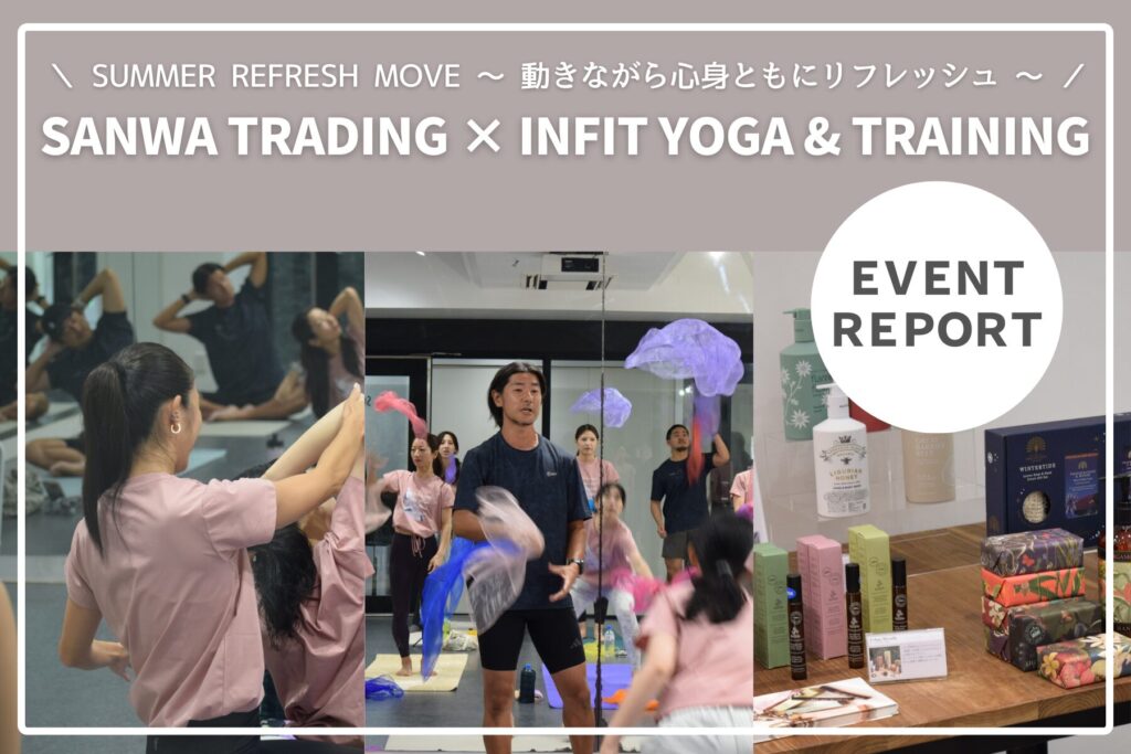 2025年8月31日、「サマーリフレッシュムーブ ~動きながら心身ともにリフレッシュ~」と題して、ヨガやトレーニングで体を動かしつつ、三和トレーディングが取り扱うフレグランスで、心身をまるごとリフレッシュするひと時を過ごしました。