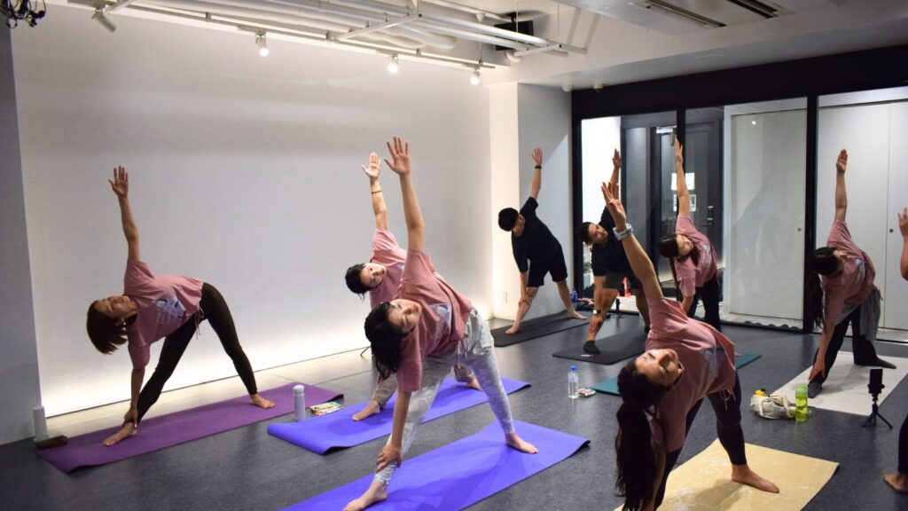 少人数で行われた今回のイベントでは、INFITアンバサダーであり、ヨガインストラクターとして数多くの指導を重ねているEmikaさんによるヨガセッションからスタート。